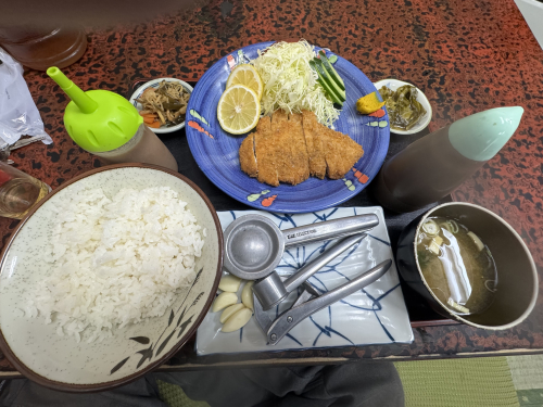 2026.03.21 信州須坂のデカ盛り聖地!「とら食堂」 車両テストで新潟まで行く途中で寄りました。 長野県須坂市にある、テレビでも話題の**「とら食堂」**へ。 青空に映える黄色と青の看板が目印の、活気あふれる名店です。 【絶品!特製とんかつ】 サクサクの衣に、セルフで生絞りしたニンニクを効かせたタレが相性抜群。 一切れでご飯が猛烈に進みます! 【驚愕のおかわり自由】 なんとご飯・味噌汁・キャベツがおかわり自由。 壁には「男性17杯(約5.1kg)」「女性10杯(約3kg)」という驚きの歴代記録が! 店主の「お腹いっぱい食べてほしい」という温かい心意気を感じる、スタミナ満点の一軒でした。