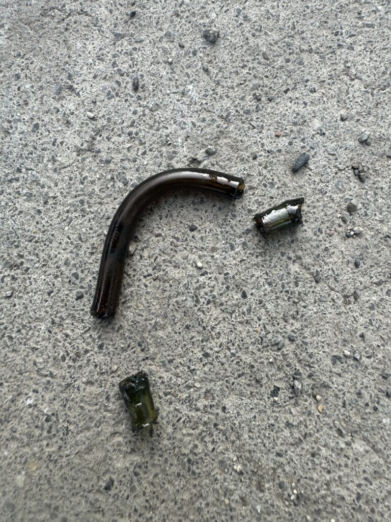 なんと、2サイクルオイルホースが劣化して、破けるというよりも割れていました。