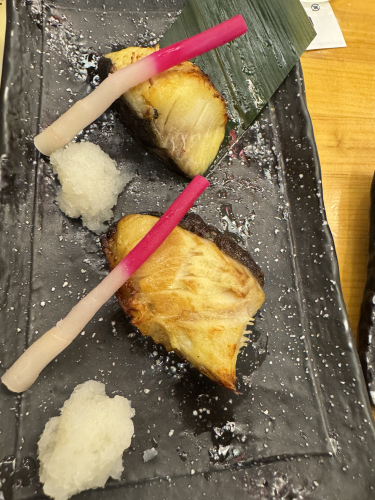 お箸を入れるとホロリと身が解け、脂ののった濃厚な旨みが口いっぱいに広がります。添えられた大根おろしとはじかみが、その甘みをいっそう引き立ててくれて、まさに絶品。